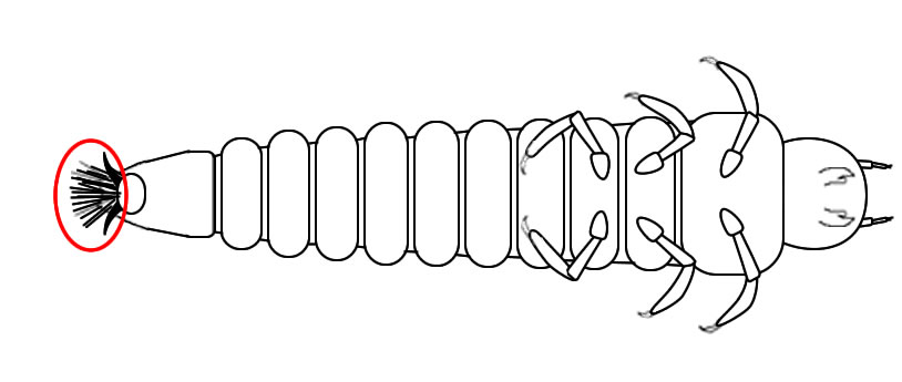 Abdomen with tufts of gills