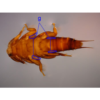 Gills (g) located between the middle and hind legs on the sides of the thorax