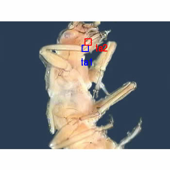 Segment 2 of tarsus (ta 2) shorter in length than segment 1 of tarsus (ta 1)
